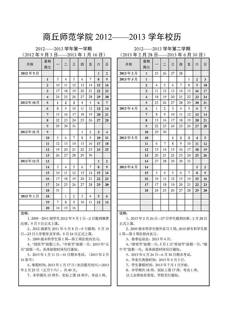 2012-2013学年校历